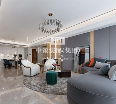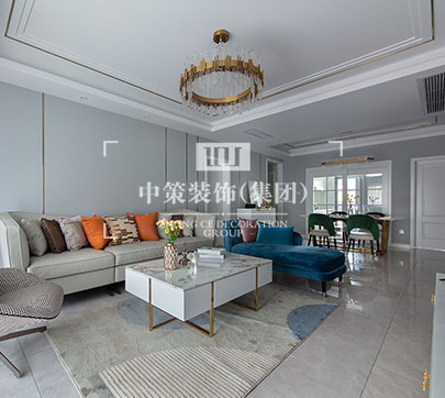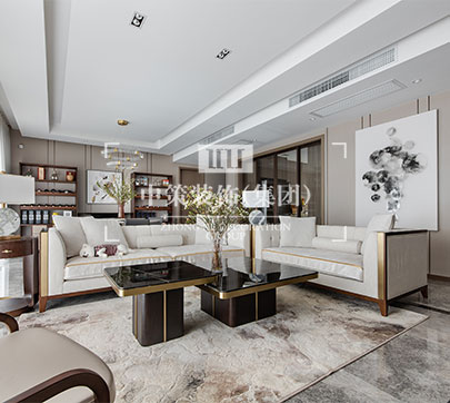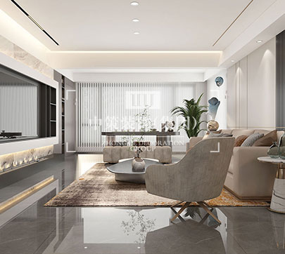 本方案为现代轻奢,清爽的色调搭配金属线条让空间时尚感加强